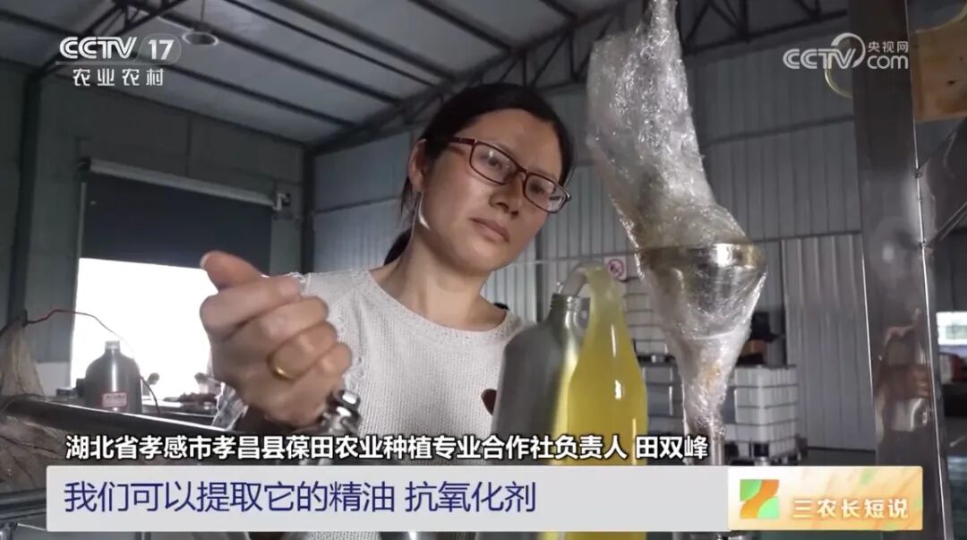 每到谷雨节气前后,孝昌县小河镇国庆村近千亩的迷迭香就会长出茂盛的枝芽,种植基地里香气弥漫,村民每天都用工具采收新鲜的迷迭香枝叶送往加工厂。