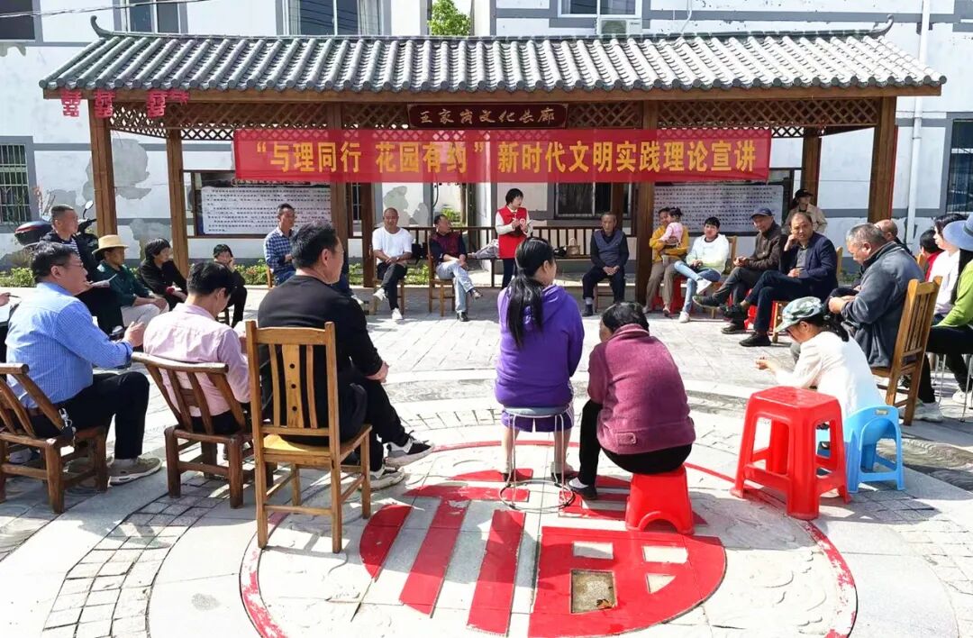 在花园镇王家岗文化长廊,一场“与理同行 花园有约”新时代文明实践理论宣讲正在进行。新时代文明理论宣讲志愿者罗慧琳围绕党的二十大报告中“乡村振兴”话题,通过接地气的讲解方式和通俗易懂的语言与村民面对面、心贴心交流,把“书面语”变成“心里话”,让党的二十大精神走村入户,深入人心,激发乡村振兴活力。