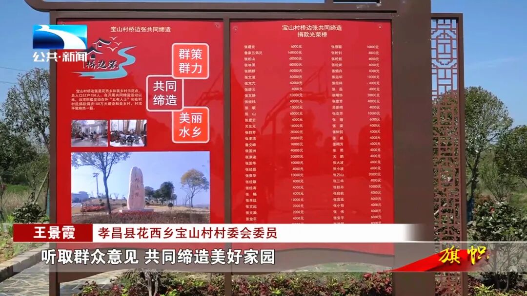 “下一步,我们将围绕水系做文章,加大投资力度,听取群众意见,共同缔造美好家园。”孝昌县花西乡宝山村村委会委员王景霞说。