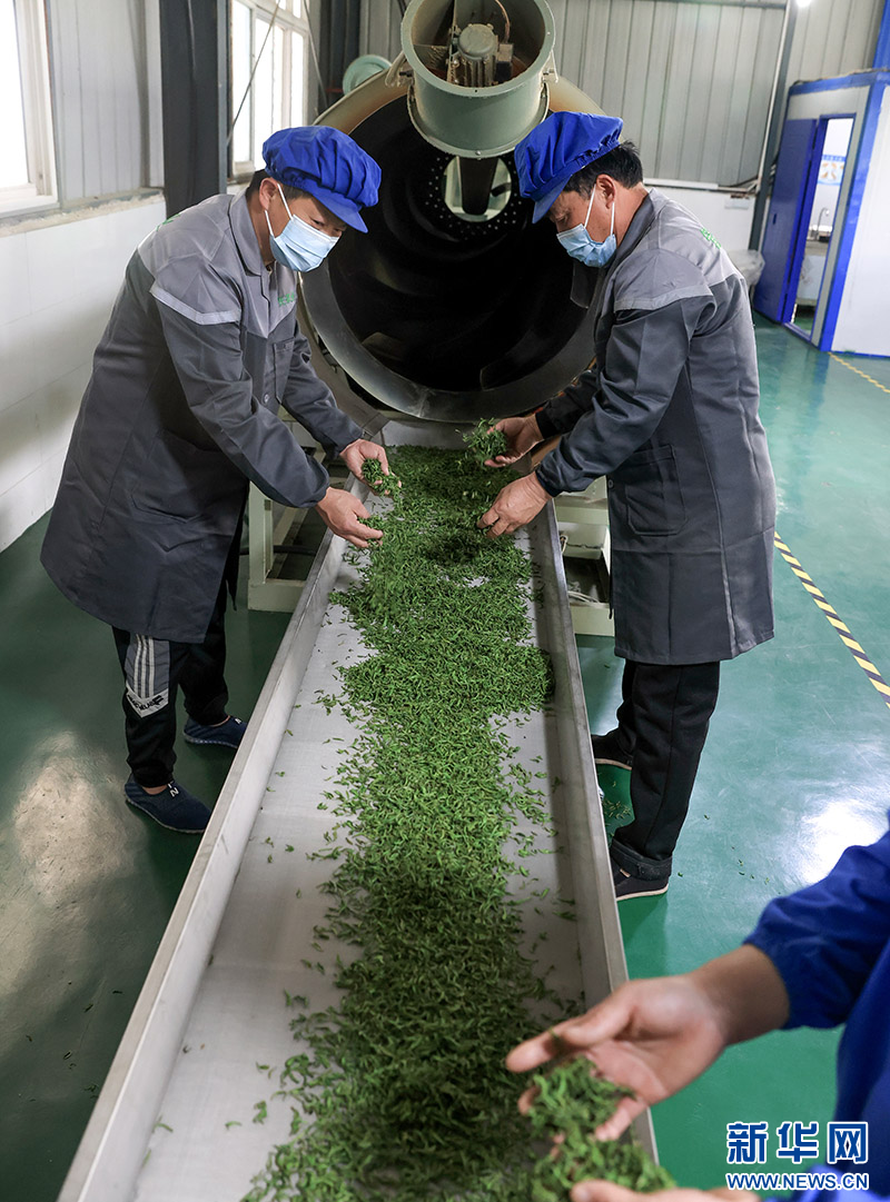 随着春茶开采,茶山下的制茶车间也热闹了起来。位于孝昌县周巷镇的湖北尖峰茶叶股份有限公司车间里,一排排制茶机械正在运作,鲜叶通过摊青、杀青、理条、做型、干燥几道工艺,浓郁的茶香扑鼻而来。