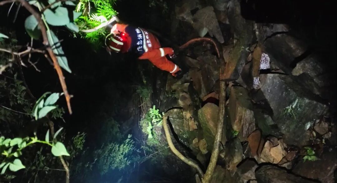 搜救过程中,山中一片漆黑,处处是悬崖峭壁,无人机、手机等通信装备无法起到有效作用,上山搜救的消防救援人员与被困人员无法取得联系,只能通过绳索标记树木、手电闪光喊话等方式确认搜救路线和被困人员大致位置。