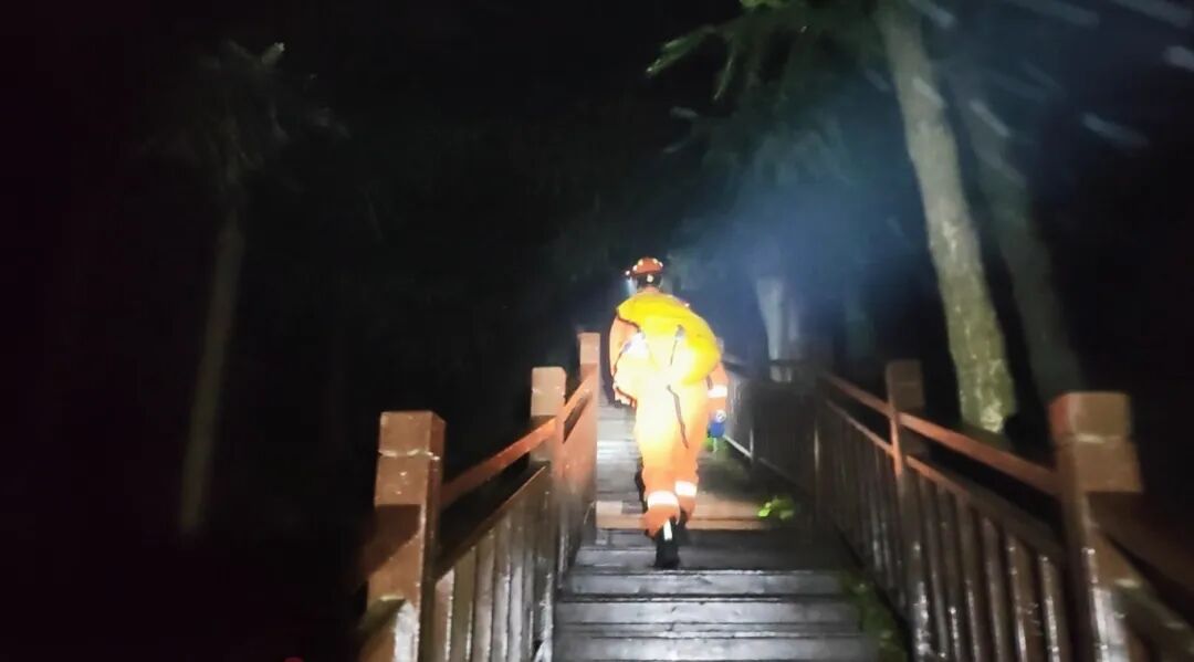 由于雨夜山上温度较低,三人均有不同程度的失温,消防救援人员将自身衣物脱下,给被困人员保暖,在对被困人员进行简单的热量补给后,有序组织撤离,成功救下3名被困人员。