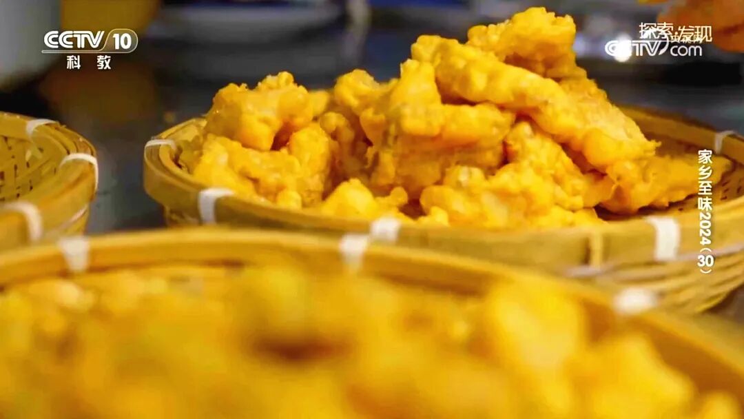 “鱼参”为肉片、鱼块穿上金黄色的外衣。伴着刺啦刺啦的响声,从锅底翻上,这是鱼参受热膨胀后,带来的热闹景象。油炸过后,滑肉和滑鱼便做好了。