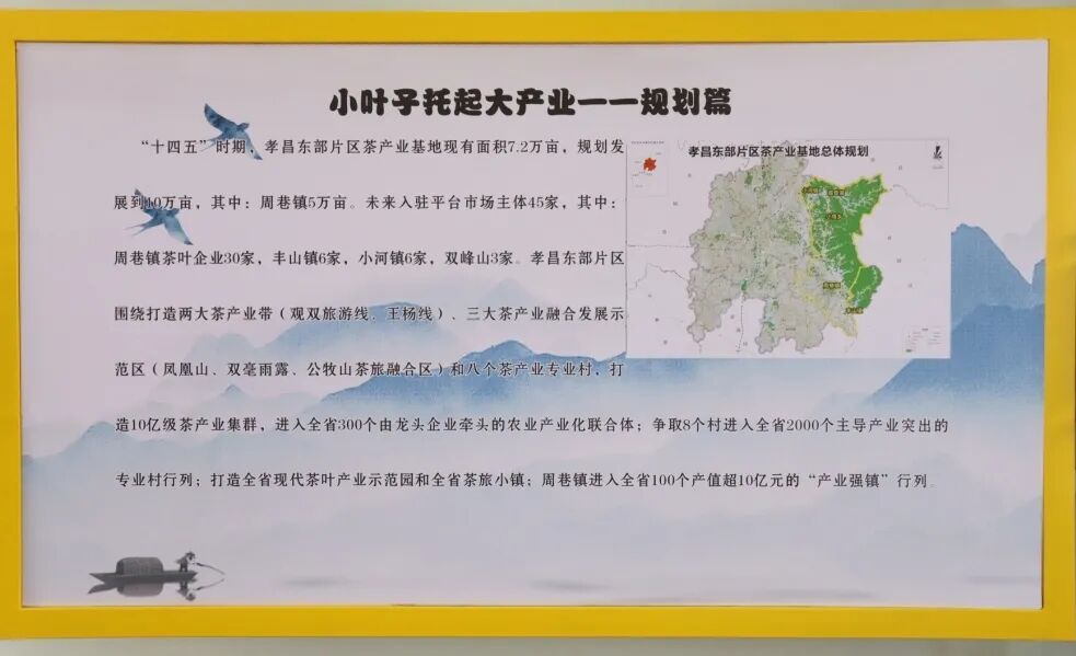 茶叶联盟造就产业品牌化建设,茶旅融合助推产业多样化发展。目前,孝昌县茶产业的规模效应和品牌效应逐步放大,整体市场份额竞争力增强,营销收入由联盟成立前的每年6000余万元,飙升到过亿元。如今盟员中,80%实现了盈利,20%实现效益好转。孝昌县周巷镇副镇长马万超:“目前我们周巷镇是以茶叶联盟为依托,以龙头企业为主导,以周巷镇北部的9个村为重点,扎实开展村企共建,创新了‘合作社+村集体+农户+基地’的‘622’利益分配模式,逐步建成周巷镇周青线、观双线万亩生态茶园,全镇茶园面积超过3万亩,茶叶年均产量超300吨,年收入约3.5亿元,带动8000余户的群众增收致富。”一片小小的茶叶,带活了一方山水。未来,周巷镇将进一步推动茶产业品牌化建设与规模化发展,加快茶叶精深加工与茶旅融合步伐,以茶带农,助力乡村振兴。