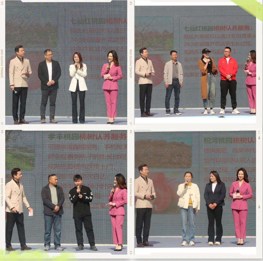 早在今年3月份桃花节活动现场,丰山镇4位种桃大户提供桃树给现场观众认领,让游客在感受田园风光的同时,感受丰收的喜悦。