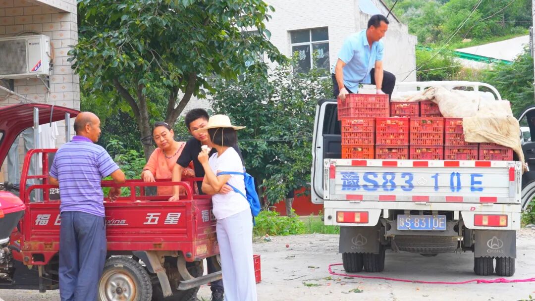 “我们从武汉过来的,每年都会过来采摘。这里的桃子又红又大又好吃。我们这次带了6位朋友过来,每人都采摘选购了200斤左右。”武汉游客蔡火生说。
