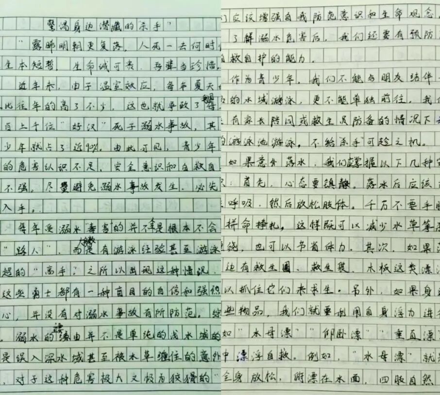 然而,每年这个时候也是溺水事件的高发期,溺水事故给家庭和社会带来了巨大痛苦。程诺言希望通过这篇征文,唤起大家对防溺水的关注,共同为青少年的生命安全筑牢防线。