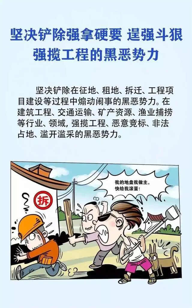 四、坚决铲除强拿硬要、逞强斗狠、强揽工程的黑恶势力。