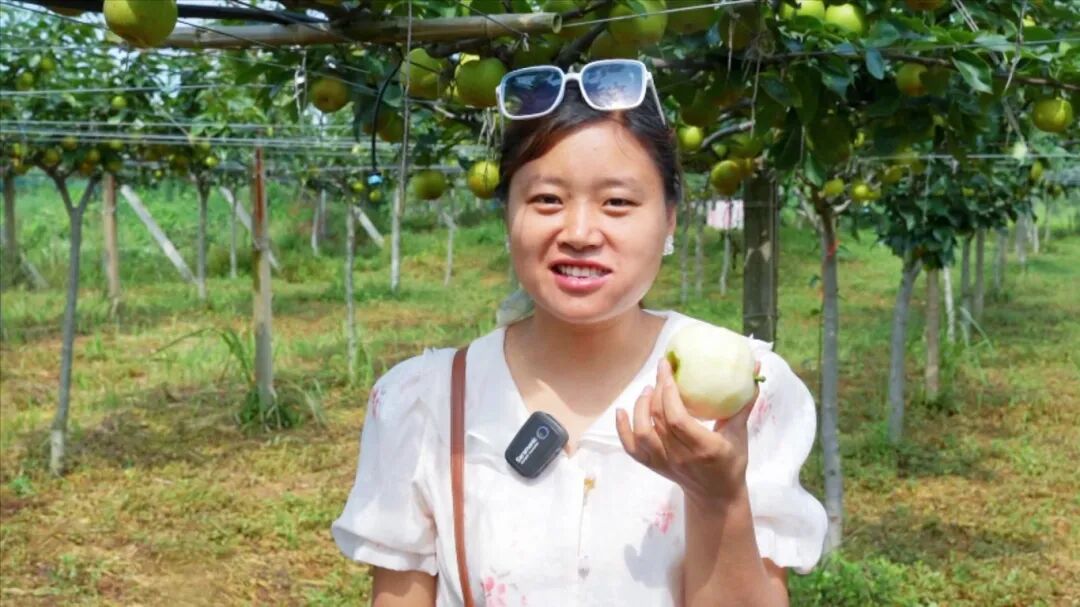 “这是我今年第4次来采摘了,这个梨子水分大,家里的老人小孩都特别喜欢吃。”市民张婷说。