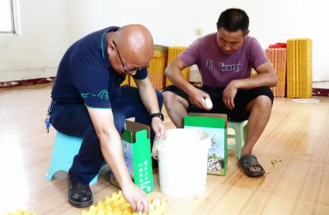 一大早,队长任建斌就来到村民谈汉兵的养殖场和他一起打包刚刚收集的鸡蛋。任建斌随即化身为村里的“销售员”,不一会,这些包装好的鸡蛋就会被销售出去。