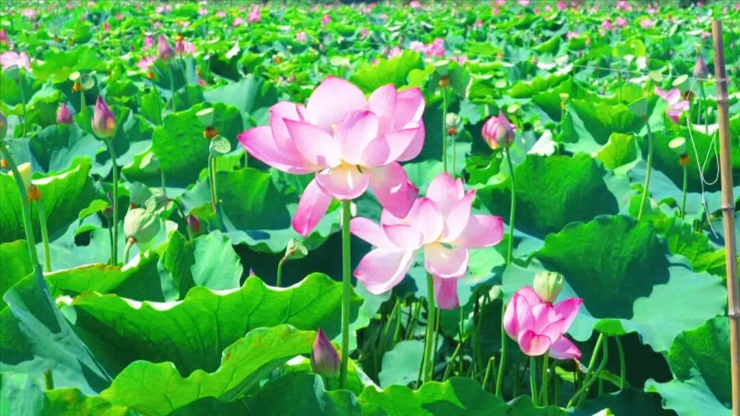 仲夏时节,孝昌县白沙镇叶河村的300余亩“太空莲”进入盛花期,碧叶连天、红莲映日,不仅让游客感受到独特的夏日美景,还给村民们带来了经济收益。