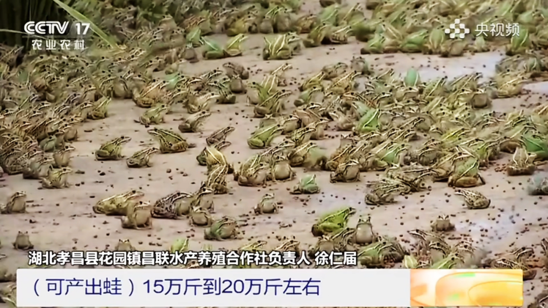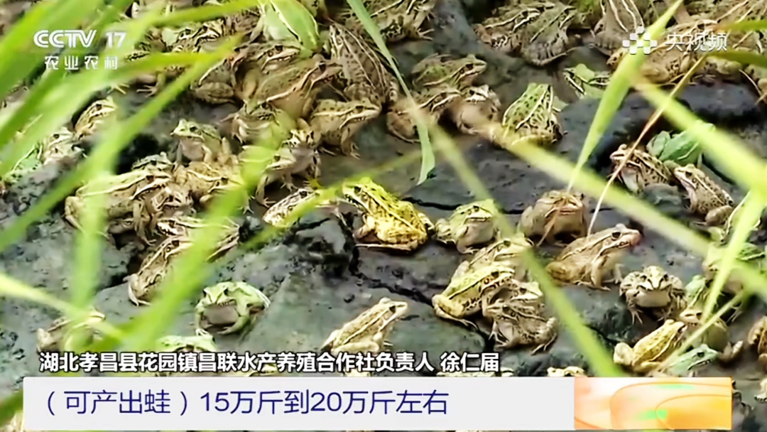 “像我这个百亩基地,正常情况下,可产出黑斑蛙15万斤到20万斤左右。”花园镇昌联水产养殖合作社负责人徐仁届说。