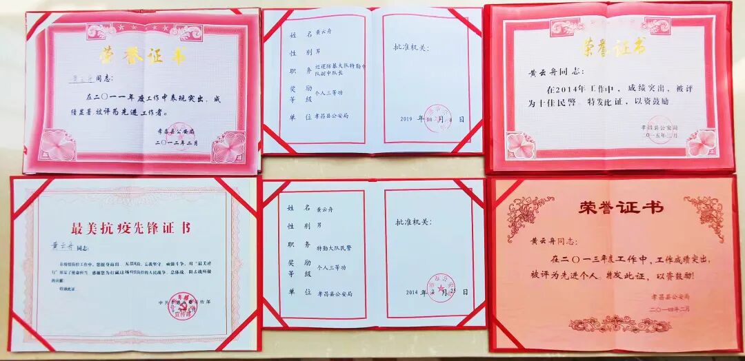 期间,他立过三等功2次,被孝感市委宣传部评为最美抗疫先锋,荣获“孝昌县十佳民警”“孝昌县最美警察”等称号,还多次被孝昌县公安局评为先进工作者。