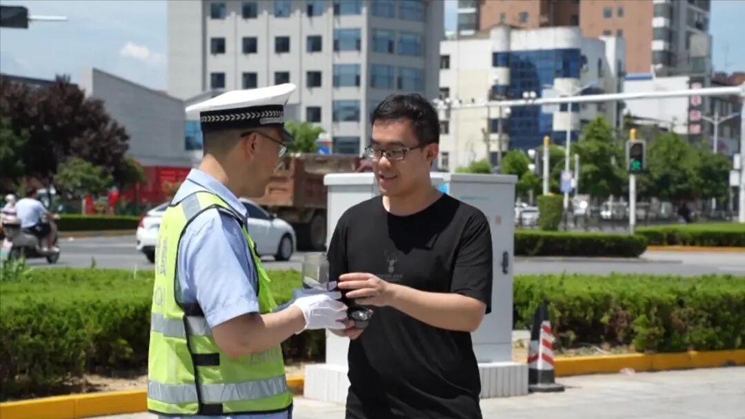 见到黄云舟时,他正在马路中间执勤。热浪滚滚的三伏天里,他一大早就来到执勤地点,通过一次次挥动手臂指挥车辆有序通过,保障群众出行安全,汗水滴落都来不及擦。哪怕骄阳炙烤,警心依然炽热。