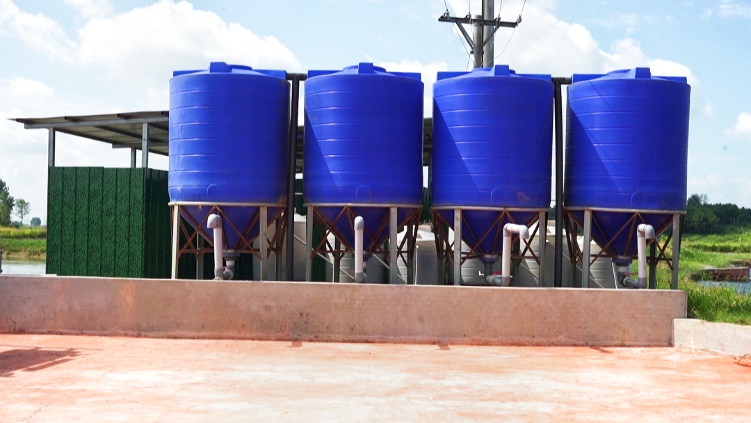 “2022年,我们与华中农业大学水产学院进行技术合作,安装了20个零排放圈养桶,包含养殖系统、排污系统、供养系统,其主要作用是将⻥儿每日吃的饲料、排出的粪便存储沉淀,然后固化运往农田,从而实现养殖⻥类对水体的零污染,每个圈养桶可培育特色鱼苗2000斤左右。”陈军乔说。