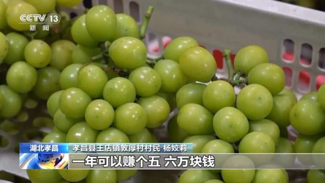 “以前务农的时候,收入过万元已经很不错了。现在种了高端葡萄后,我们的收入增加了,一年可以赚五六万元。”孝昌县王店镇敦厚村村民杨姣莉说。