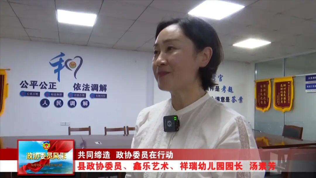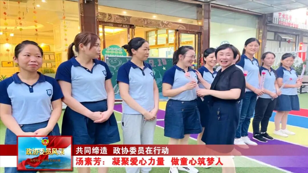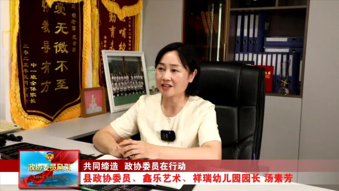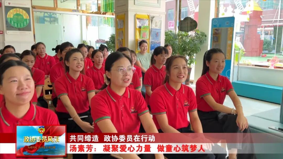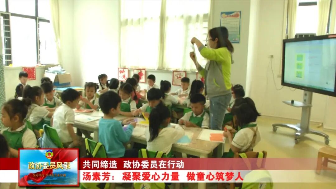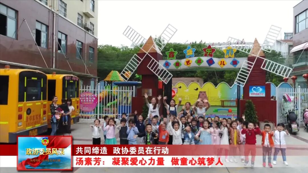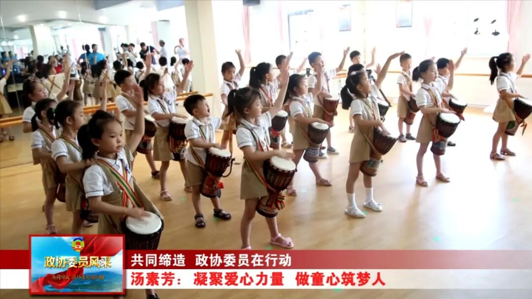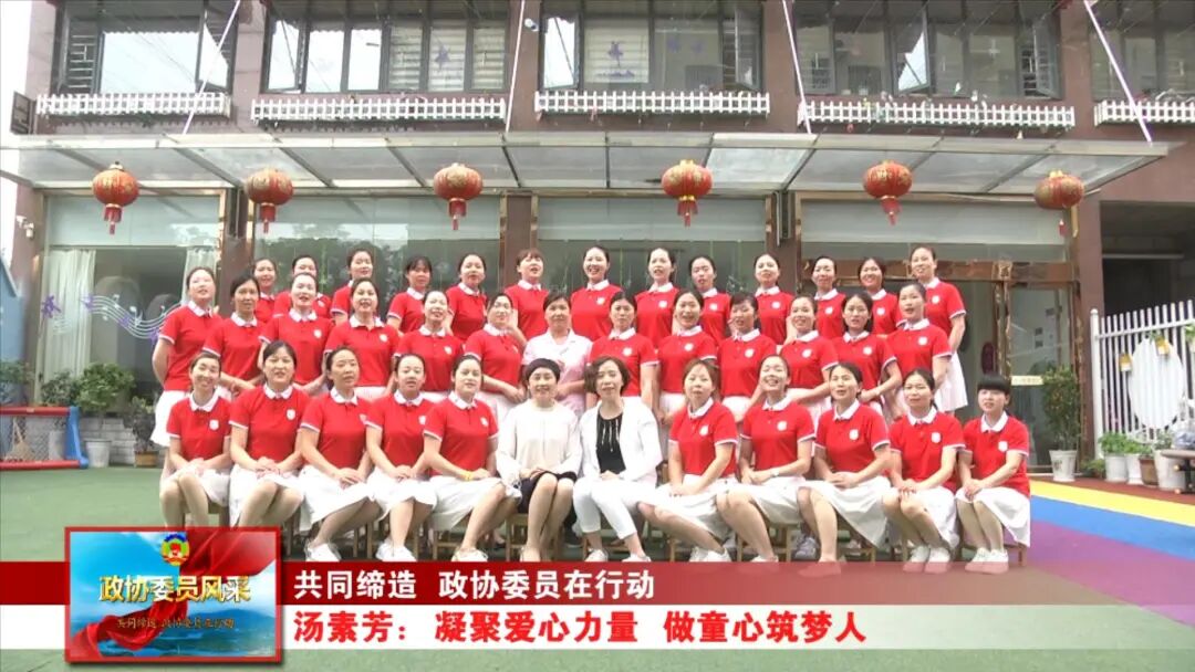 共同缔造,政协委员在行动,欢迎收看今天的政协委员风采栏目。汤素芳是鑫乐艺术幼儿园、祥瑞幼儿园的园长,也是一名政协委员。多年来,她以群众需求为导向,充分发挥自身专业优势、职业优势,凝聚社会爱心力量,组建了“鑫乐爱心妈妈”志愿服务团队,搭建起联系妇女儿童的连心桥,用女性委员履职的柔情和温度关注学前教育,用实际行动呵护孩子健康成长。