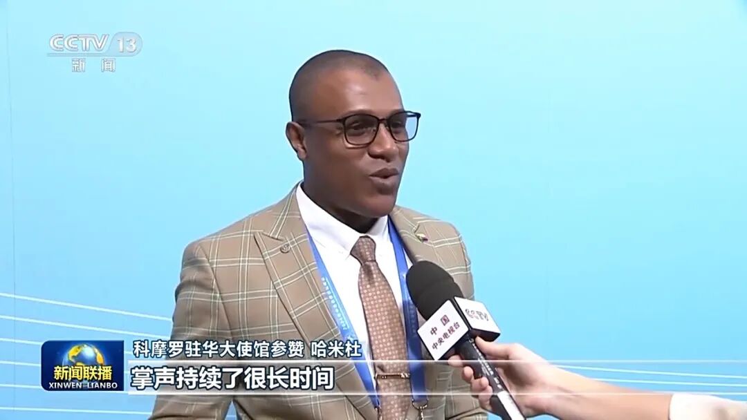 科摩罗驻华大使馆参赞 哈米杜:每一个在现场聆听讲话的人都感到很振奋。大家都在鼓掌,掌声持续了很长时间。中非关系整体定位提升至新时代全天候中非命运共同体,它将为非洲的发展带来更多机遇,将促进中非双方以及非洲国家之间的交流合作。