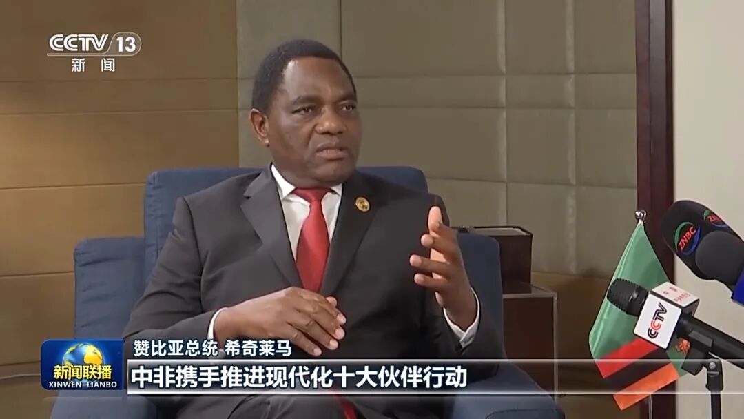 赞比亚总统 希奇莱马:习近平主席在讲话中提出中非携手推进现代化十大伙伴行动。我们感谢习主席、中国政府和人民,邀请我们参与这“十大伙伴行动”,这些行动充分聚焦中国和非洲国家如何在实现发展的道路上携手合作。这样的发展是全方位的,这将有助于我们建设一个更安全、更可持续发展、更美好的世界。