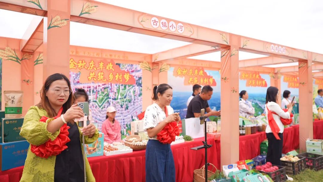 14个乡镇区的特色农产品展销台前,人流如织,气氛火爆。电商助农大赛中获奖的主播们在直播间各显身手,向网友推介家乡优质农产品。