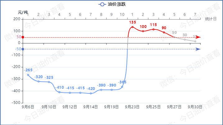 【国内油价】10月3日,国内油市休市,当前预计油价上涨15元/吨,未达50元/吨的上调标准线,处于搁浅状态。近日国际原油价格连续两天上涨,受此影响,10月8日(国庆假期过后第一个工作日)油价周期统计第8个工作日,油价涨幅将扩大,10月10日晚12点油价调整,油价恐怕要涨!