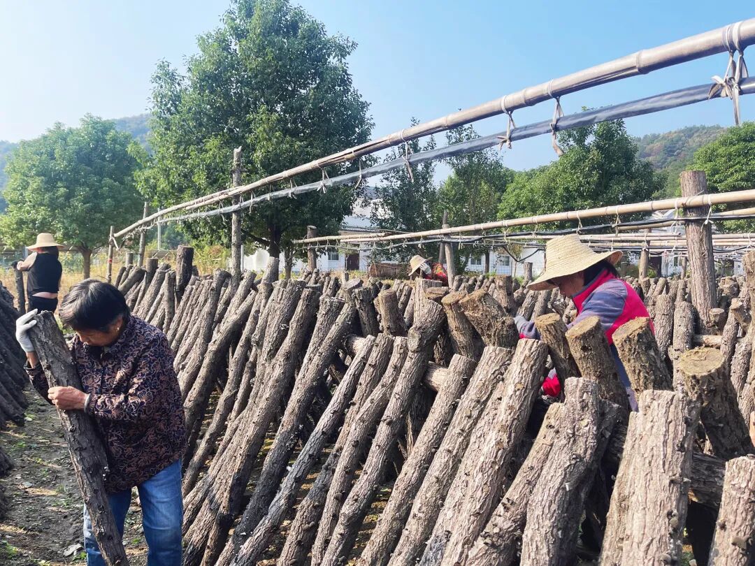 “自2023年9月确定发展菌菇产业后,村里分批购置了6000多根1.3米长的椴木棒,经过精心地堆叠、浇水和风干处理,为菌种营造出适宜的生长环境。现在终于迎来了采摘期。”小悟乡阳林村村委会委员汪卫介绍。