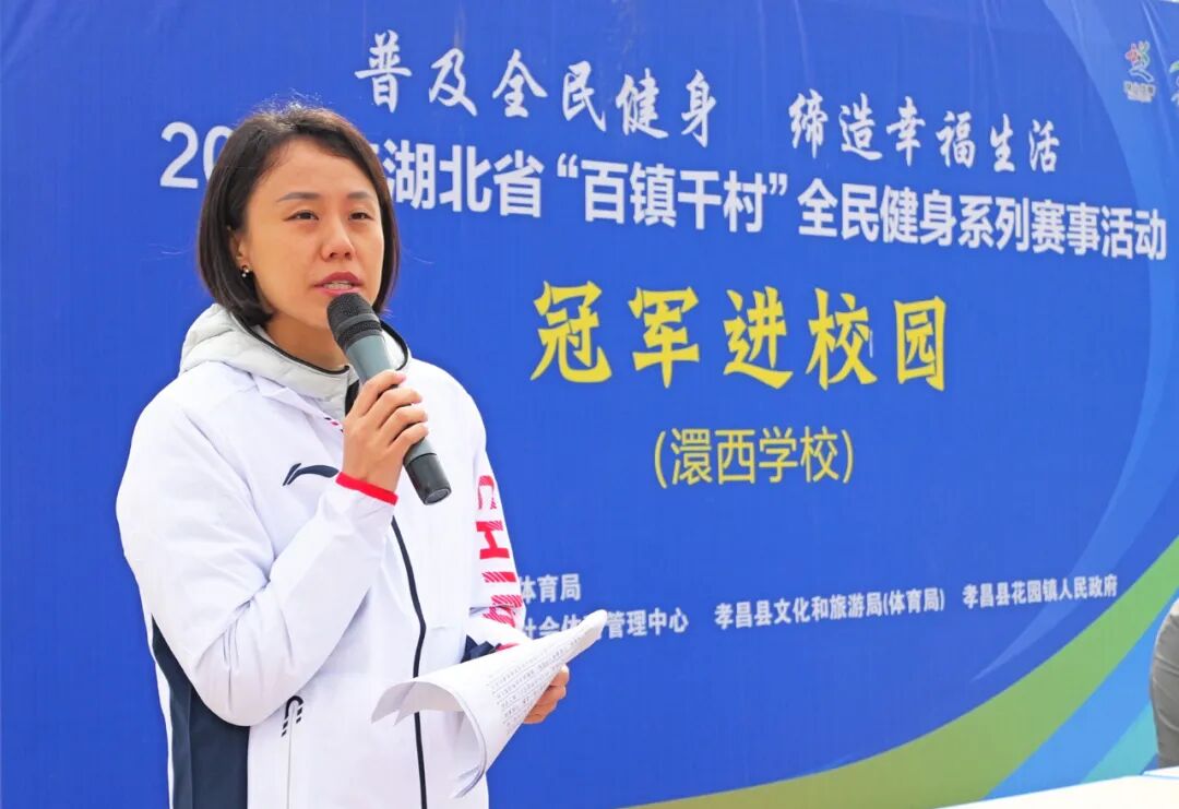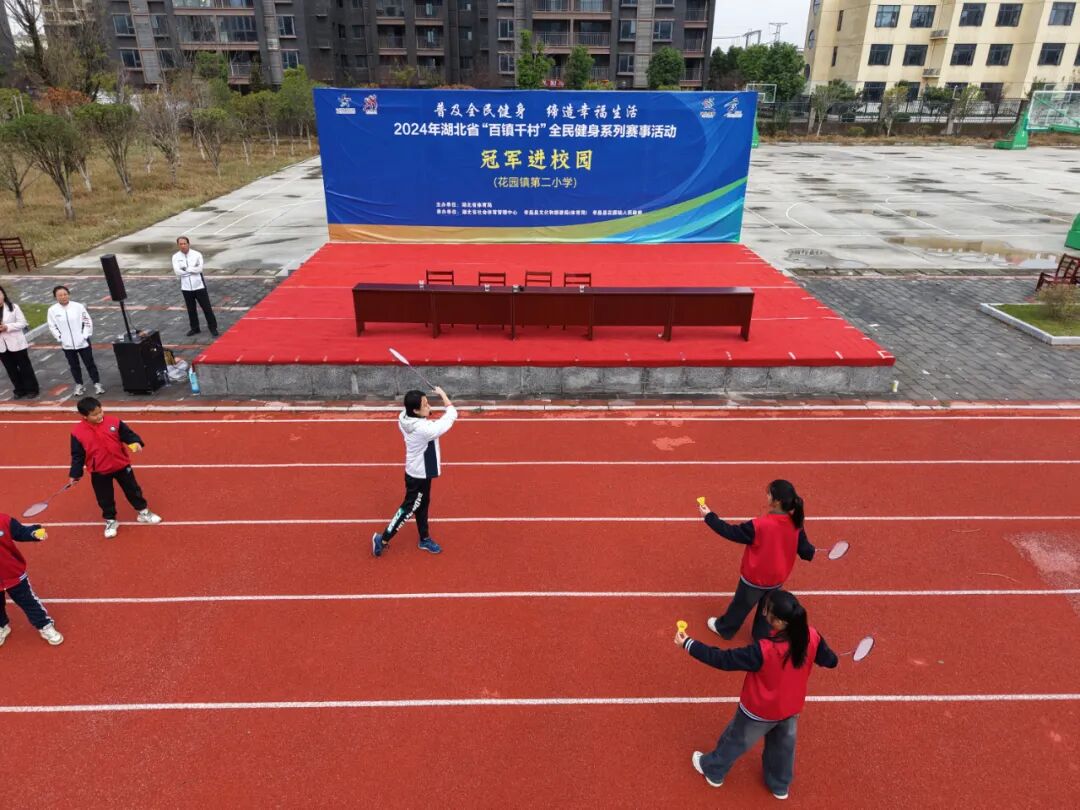10月22日,2024年湖北省“百镇千村”全民健身系列赛事活动“冠军校园行”分别走进孝昌县花园镇澴西学校、花园镇第二小学、花园镇八一中学。世界冠军、奥运冠军、中国女子羽毛球运动员赵芸蕾为同学们带来了一场别开生面的成长经历分享会,讲述自己的“追梦”故事。