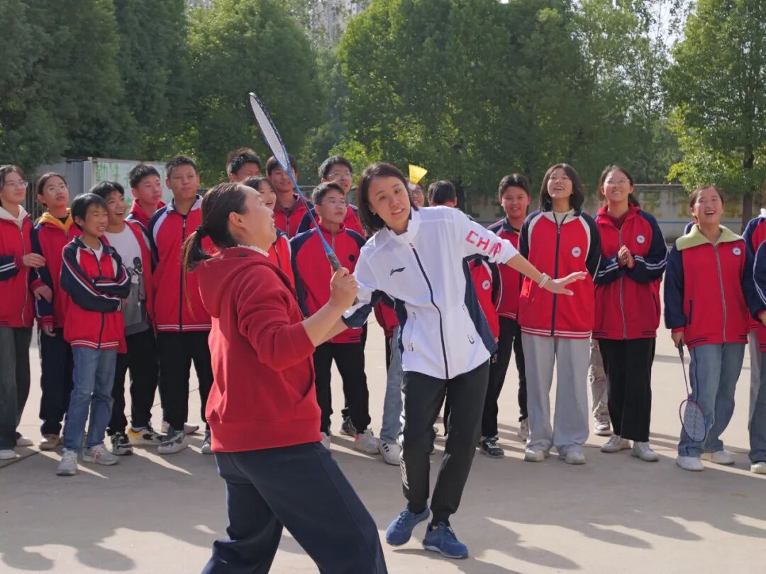 “我平时很喜欢打羽毛球,奥运冠军教会了我很多技巧,以后我也会以她为榜样,多加练习,打好羽毛球。”花园镇八一中学学生左杨灿说。