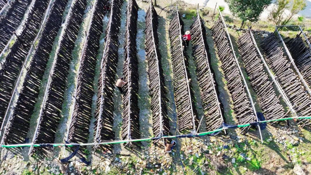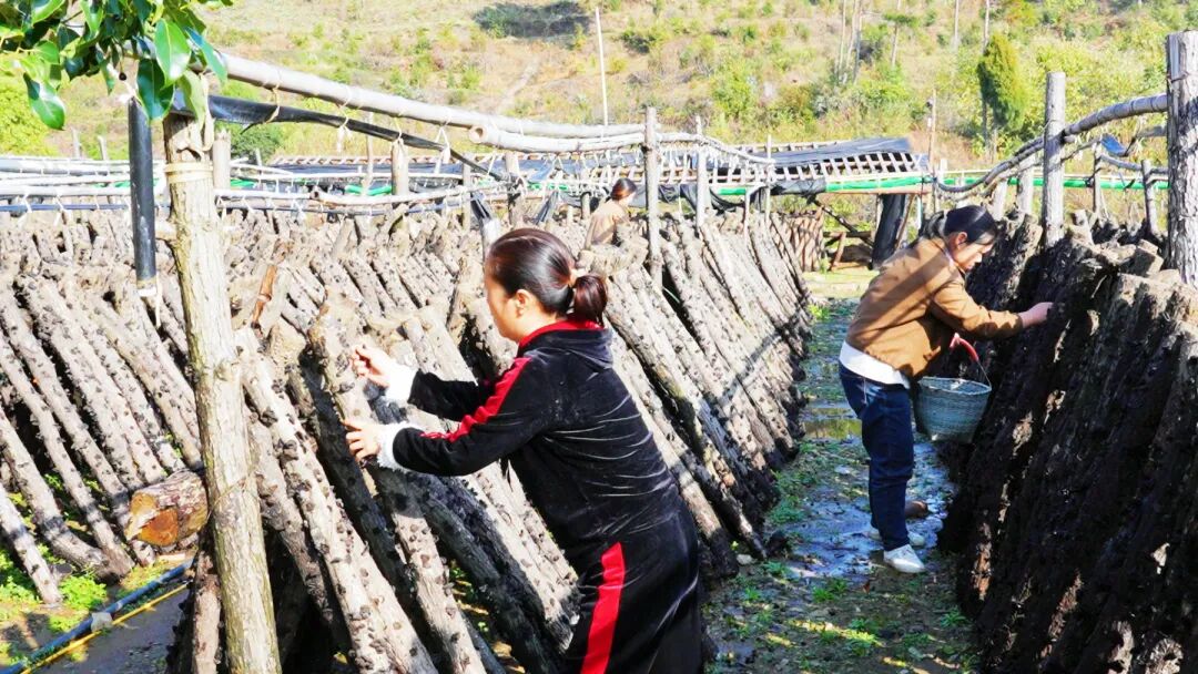 阳林村的林下土地肥沃,温湿度条件适宜,是培植野生菌的理想之地。自2023年9月确定发展菌菇产业后,村里迅速行动,分批购置了一万多根1.3米长的椴木棒。这些椴木棒经过细致除杂处理后,便成为孕育菌菇的“温床”。小小黑木耳“种”出的致富路,也让群众在家门口吃上了“产业饭”。