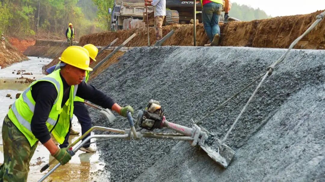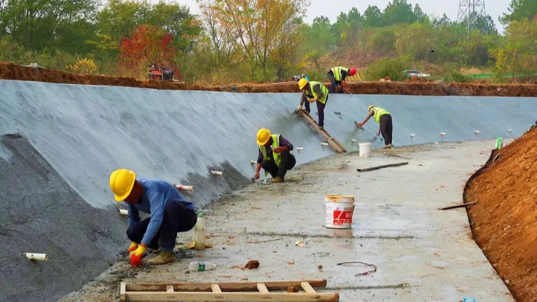 在孝昌县小河镇槐河村金盆灌区节水改造工程片区的施工现场,工人们正在紧锣密鼓地进行干渠护砌作业。他们利用各种器具,将混凝土均匀地浇筑在渠道护坡上,用振动器振捣密实后,再使用磨光机磨平压光。在工人们的精心施工下,灌区渠道逐渐展现出新的面貌。