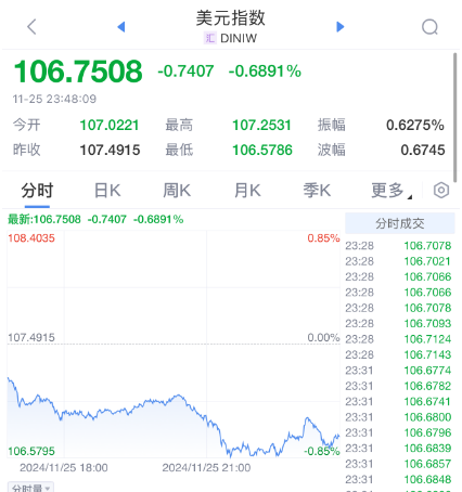 25日晚间,美元指数跳水,人民币汇率逐渐升值。