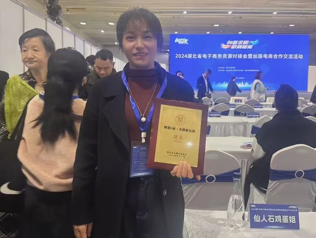 日前,2024湖北省电子商务资源对接会暨丝路电商合作活动在武汉国际会展中心成功举办。在首批“荆楚E商·直播助农团”团长授牌仪式中,孝昌县“鸡蛋姐”王素美获得团长荣誉。