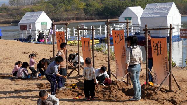 “在这里,我们可以挖沙、坐船,玩得可开心啦。”孝感市民费晨宇小朋友说。