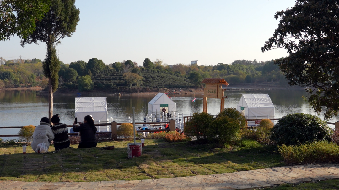 露天沙滩、水上游船、围炉煮茶……在冬日暖阳的映照下,孝昌县周巷镇五龙湖骑行露营基地热闹非凡,众多游客纷至沓来休闲度假,于田园和村落间尽情领略青山绿水,享受乡村生态游的舒适与惬意。
