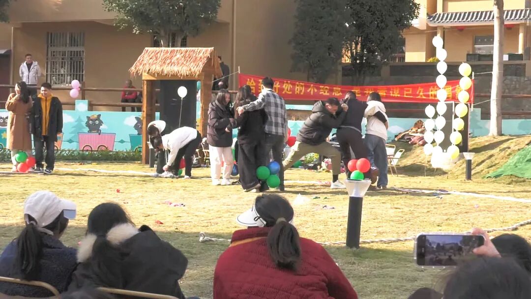 活动现场温馨而浪漫,精心布置的场地洋溢着青春的气息。为了缓解男女嘉宾初次相识的陌生感,活动设置了破冰游戏桃花朵朵开、一穿到底和团队合作游戏爱的搬运工、踩气球、你演我猜、情歌猜猜猜等有趣的互动环节,让大家在轻松自在的氛围中畅快交流,培养青年们的默契与协作能力的同时,也悄然拉近了彼此的距离。
