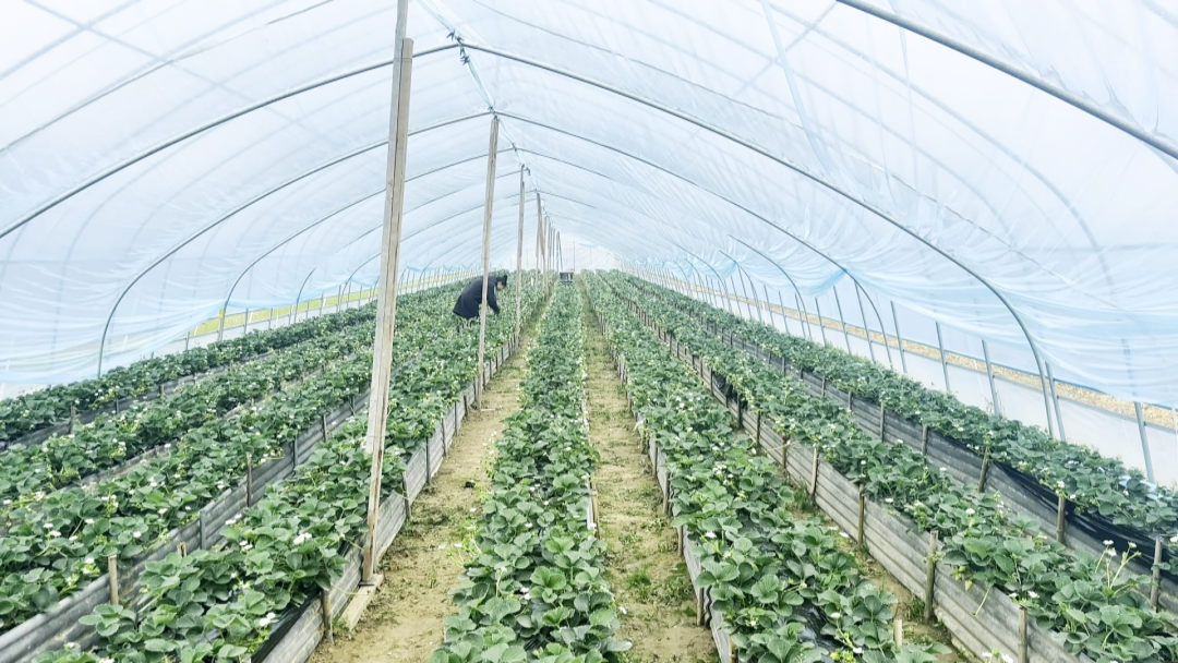 走进草莓大棚,一颗颗娇翠欲滴、红白相间的草莓散发出诱人的果香。据基地负责人介绍,尽管当前草莓还未大量成熟,但已有回头客前来“尝鲜式”采摘。