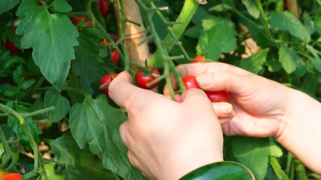 “小番茄一年种两季,品种有千禧、樱桃小番茄等,除日常施肥除草外,还需修剪枝叶,既可以提高产量,也能使挂果更漂亮。”罗兰兰说。