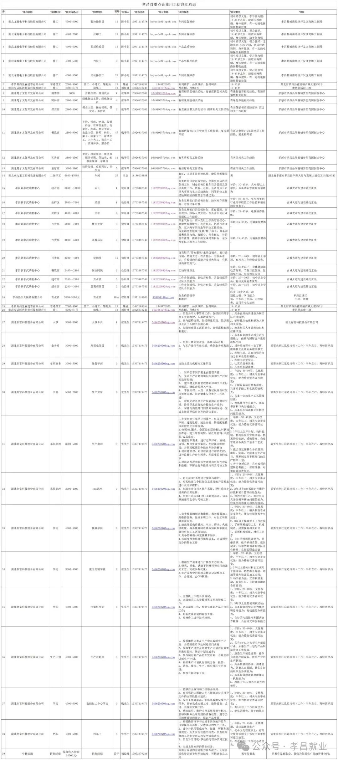 孝昌县重点企业招聘信息