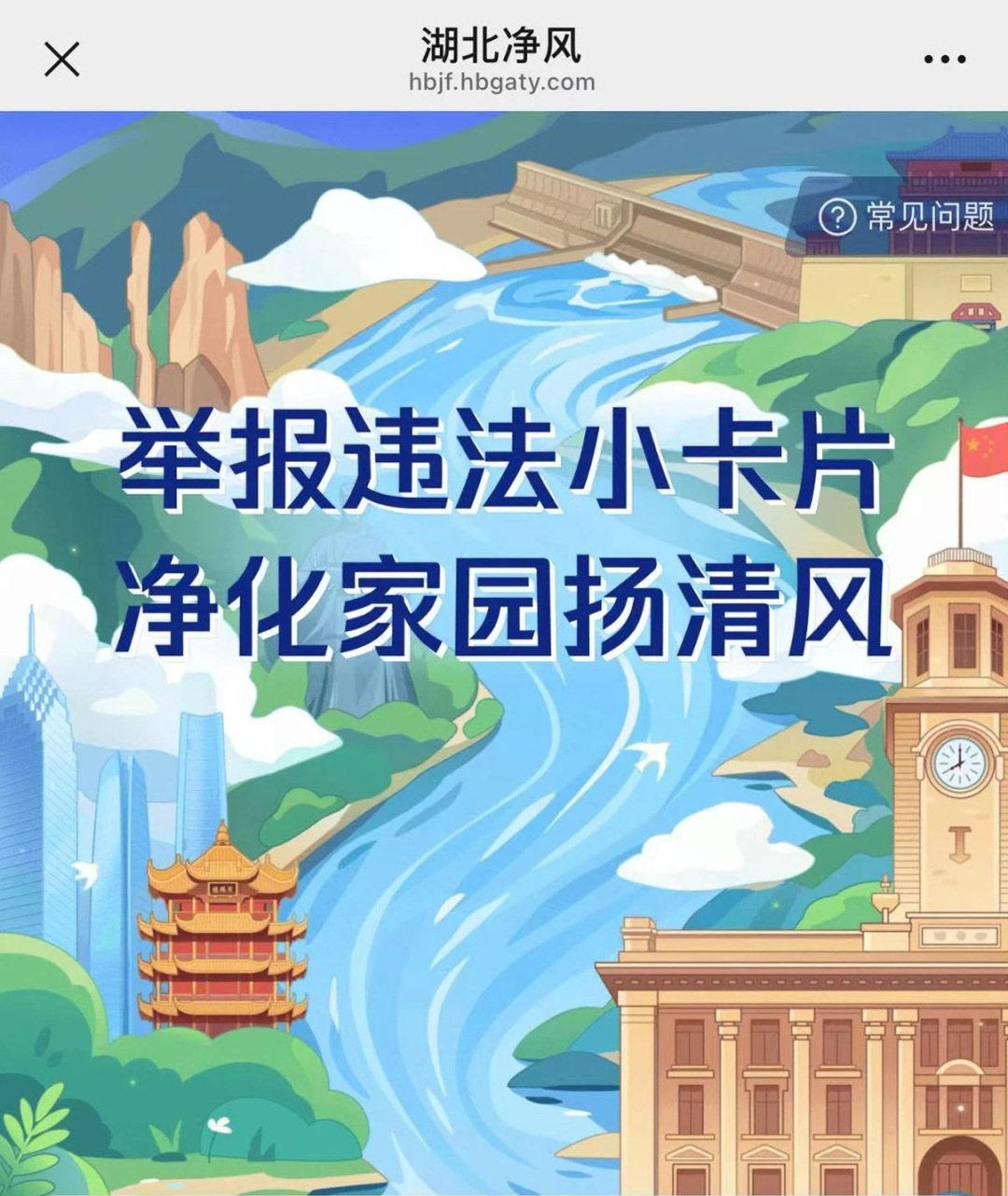 平安湖北,共同缔造。若发现“小黄卡”“涉黄涂鸦”“不干胶小广告”等有害信息,请立即通过“湖北净风”涉黄涉赌违法小卡片群众举报平台拍照举报。