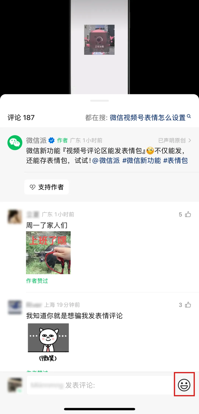 微信又一新功能上线 2024-12-24 09:00 0 12月23日,据“微信派”最新消息,微信官方宣布新功能上线,微信视频号评论区可以发表情包。 据介绍,更新微信至最新版本,打开微信视频号的视频评论区,点击“笑脸表情”即可选择微信默认表情或收藏的表情包并发送。 来源:界面新闻、“微信派“微信公众号