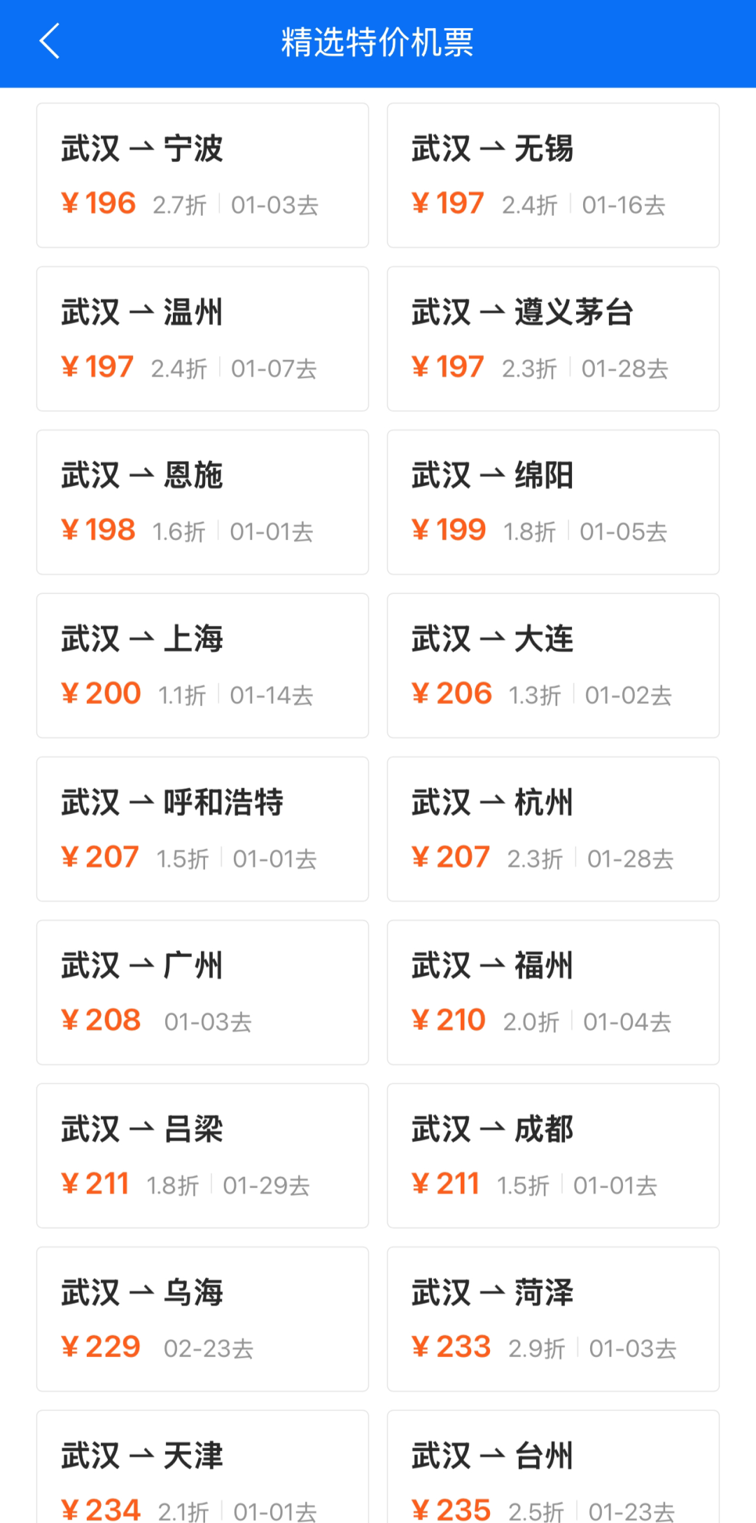 以武汉出发的机票为例