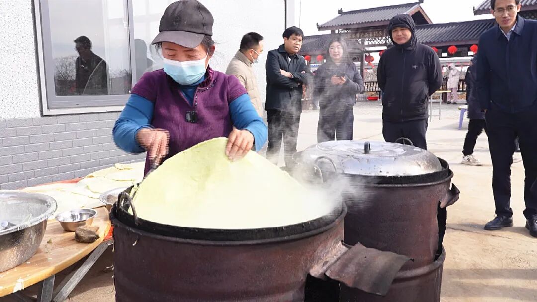 直播间里互动不断,场外已是热闹非凡。游客们迫不及待的参与到打糍粑、烫豆丝传统美食制作中,一边品尝着热腾腾的美味,一边提前感受温暖的年味。