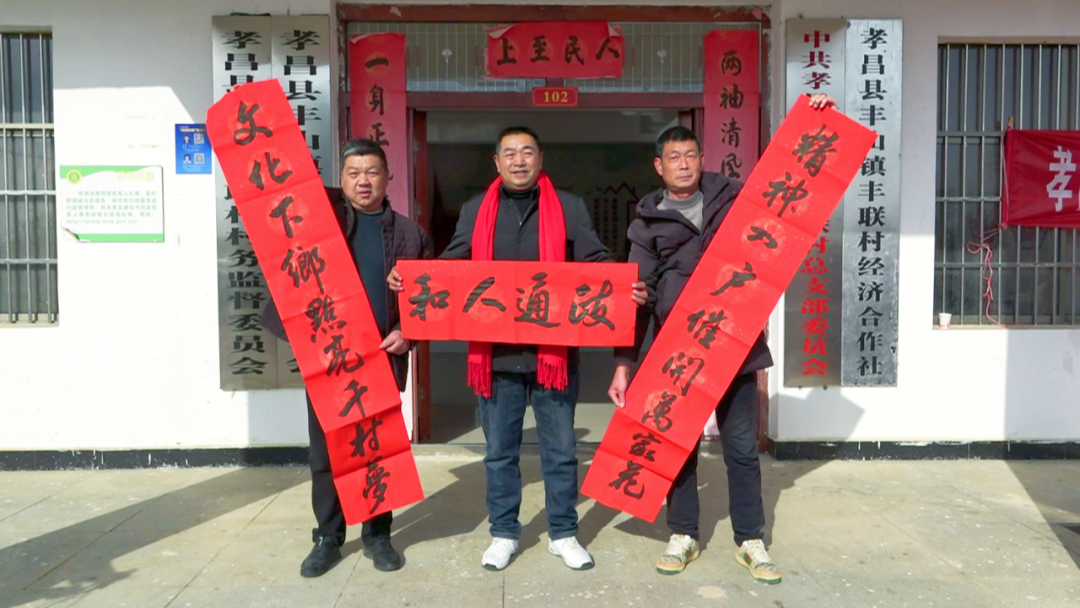 “孝昌县书法家协会举办2025年送春联系列活动,旨在把书法艺术和新春祝福送到村民手中,希望这些春联能为大家的生活增添喜庆,也让更多的人了解和喜欢传统书画艺术,让这一艺术瑰宝扎根在广大群众心中。”县书协负责人杨宣松说。