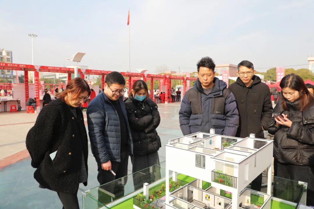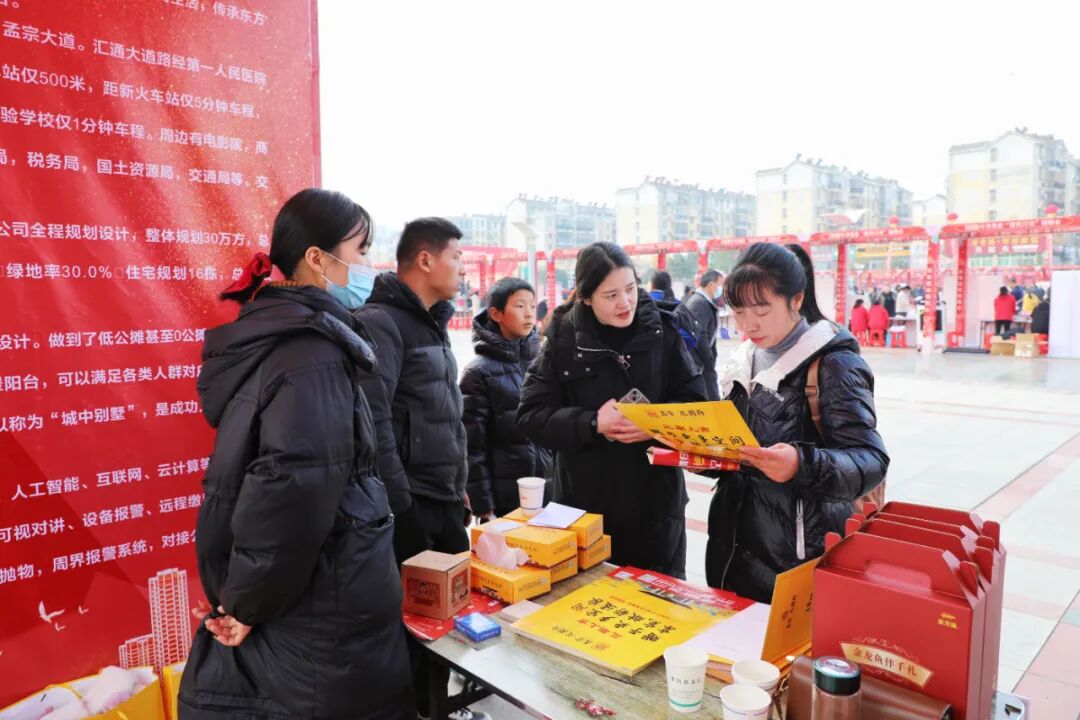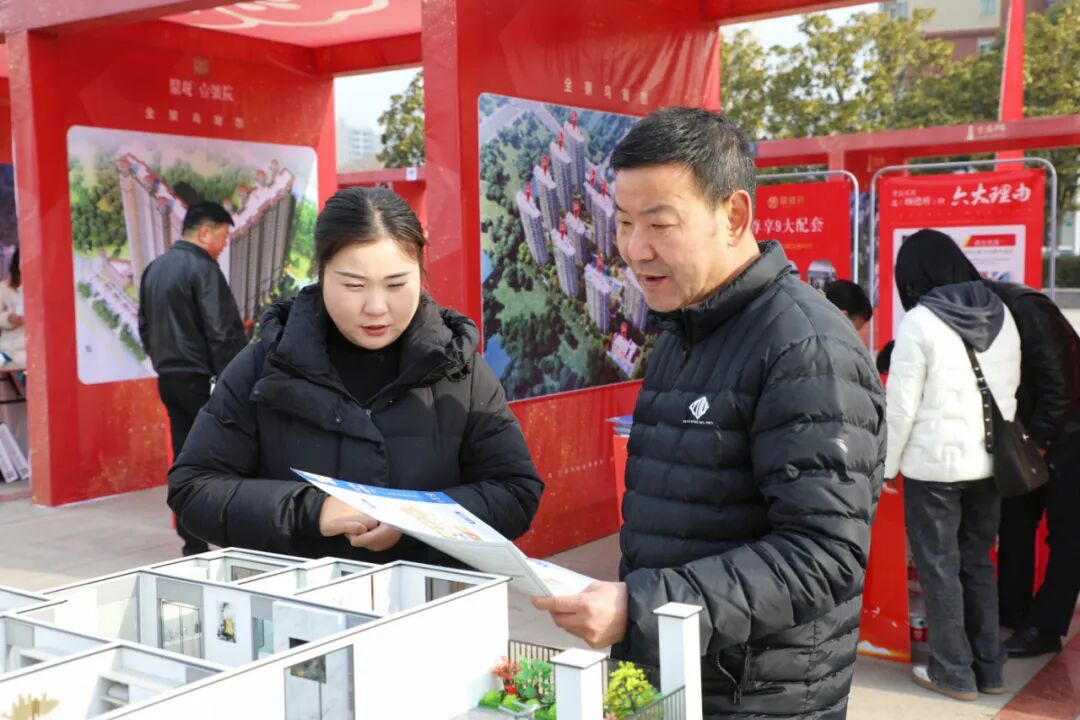 除了年货采购和求职招聘,现场的房交会区域同样热闹非凡。各大房地产开发商精心布置展位,通过户型模型和详细的宣传资料,全方位展示楼盘特色。从温馨小户型到宽敞大平层,丰富多样的房源吸引了众多购房者驻足咨询。工作人员热情地为居民介绍房源信息、购房政策以及周边配套设施,现场气氛热烈。据悉,当天共有18家房企、20个项目共提供优质房源3200套供居民选购。