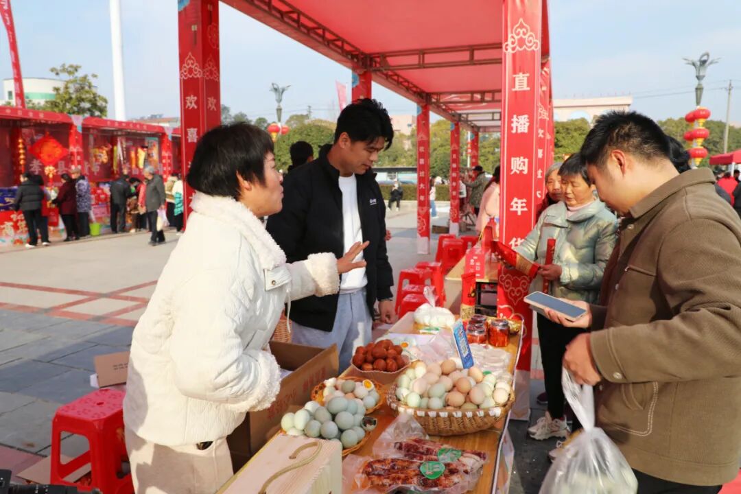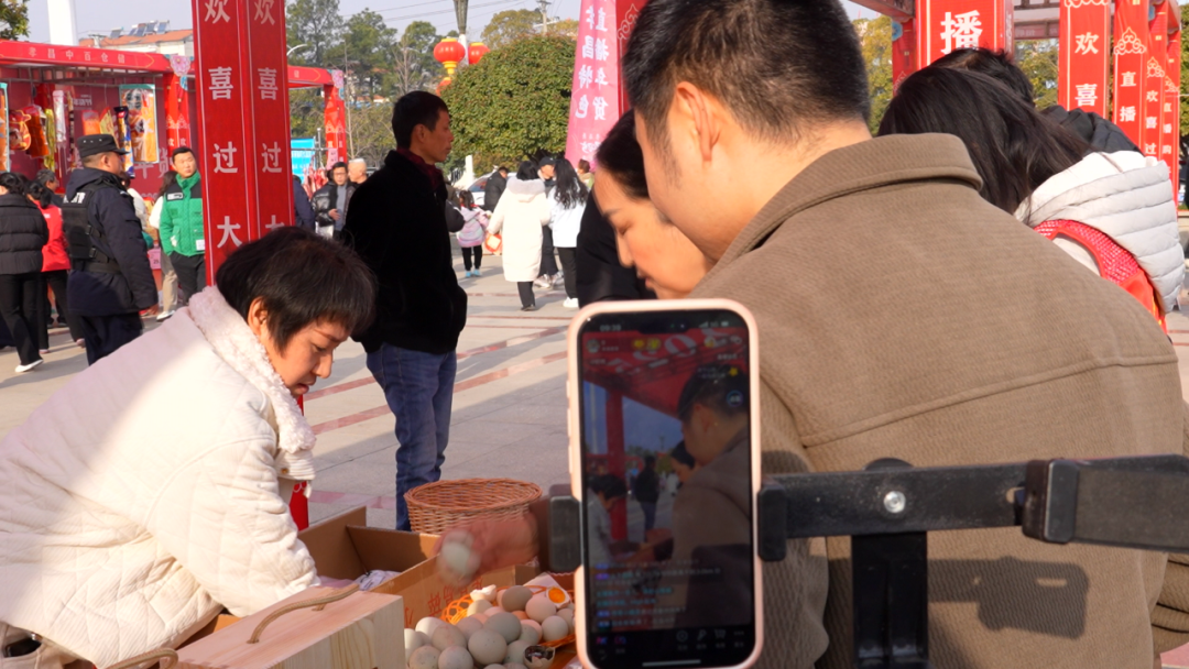 这边现场卖货,那边电商直播。从香甜的米酒到美味的腊货,电商企业的主播们对着镜头热情地推销着孝昌的特色年货,他们生动的讲解和热情的推荐,让屏幕另一端的网友们也仿佛置身于热闹的集市,感受到了孝昌浓浓的年味与独特魅力。
