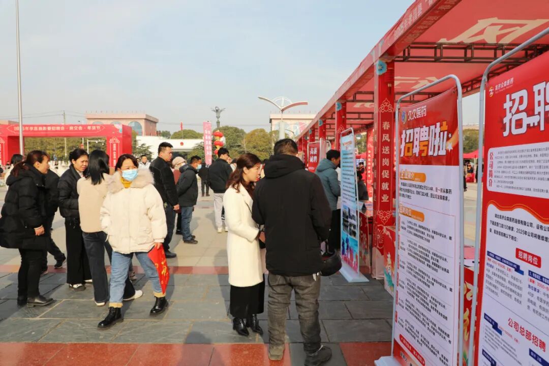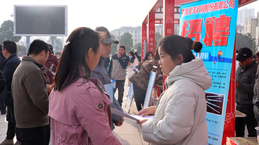 与年货大集的热闹交相辉映的,是一旁热火朝天的招聘会现场。50多家用工企业整齐地摆起招聘摊位,工作人员热情地为前来咨询的居民介绍岗位信息。不少人手里拎着刚买的年货,又认真地翻阅着招聘资料,眼中满是对新一年的期待。