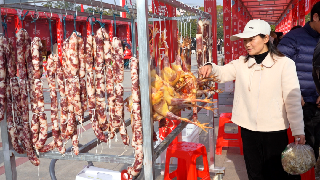 “要过年了,我想买点年货。这里都是当地村民自家的土特产,吃起来放心。”居民余秀玲说。“过年了,我和妈妈来这里逛一下,这里有很多好吃的,也很好玩。”小朋友田梓汐说。