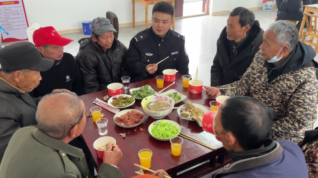 活动当天,民警们早早来到幸福食堂,协助食堂工作人员进行食材准备、烧菜等工作。到了饭点,民警们主动承担起服务村民的任务,热情地为每一位村民端菜盛饭。席间,民警们与村民们围坐在一起,共享这顿丰盛的年夜饭。在欢声笑语中,警民之间的距离被进一步拉近。