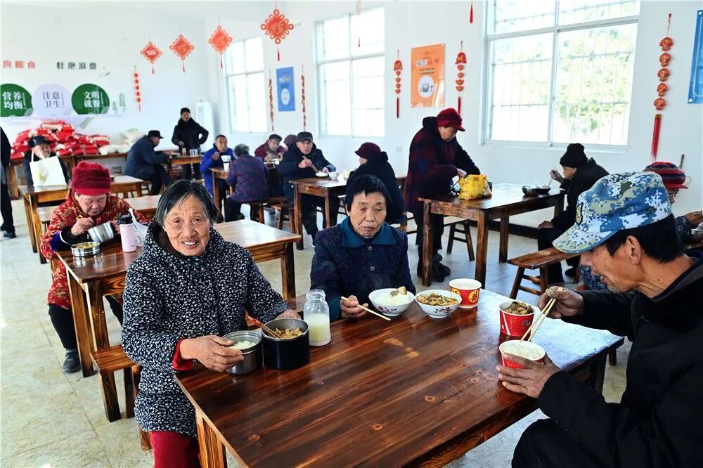 “现在的政策好呀!我们在这里有热饭吃,又能和乡亲们聊天打发时间,子女在外也很放心。”73岁的皮中英老人笑着说,幸福食堂不仅饭菜荤素搭配、营养美味,而且还提供了交流场所。