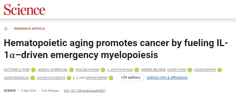 2024年9月,《科学》期刊上发表的一项研究发现:免疫系统的衰老会产生有害的炎症反应,从而推动癌症发展,而阻断炎症能够逆转衰老的促癌作用。